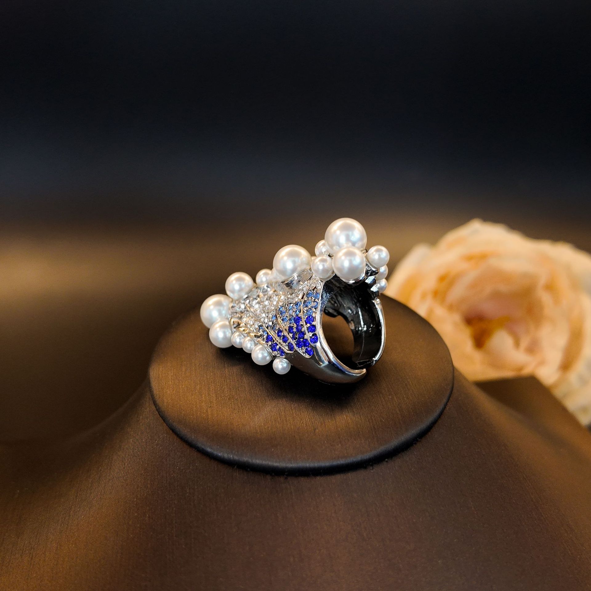 Blue Ring Fashion jewellry Rhinestone Ring Imitation Pearl Ocean Fashion Exquisite Ring