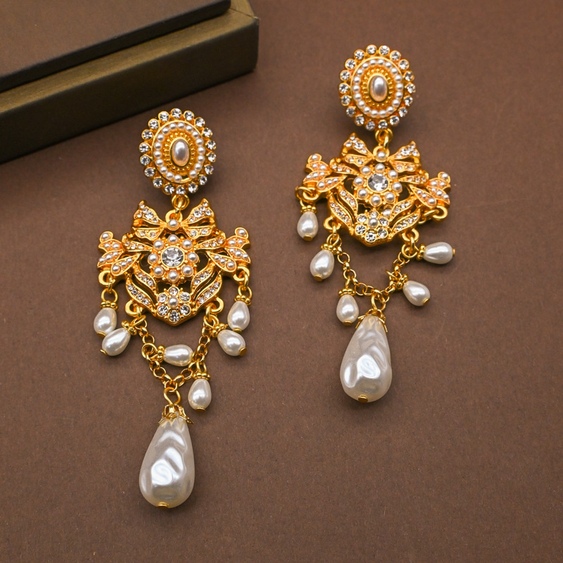 Earrings With Pearl Drops Drop Pearl Earrings Gold Plated High End Fashion Retro Temperament Women’s Earrings