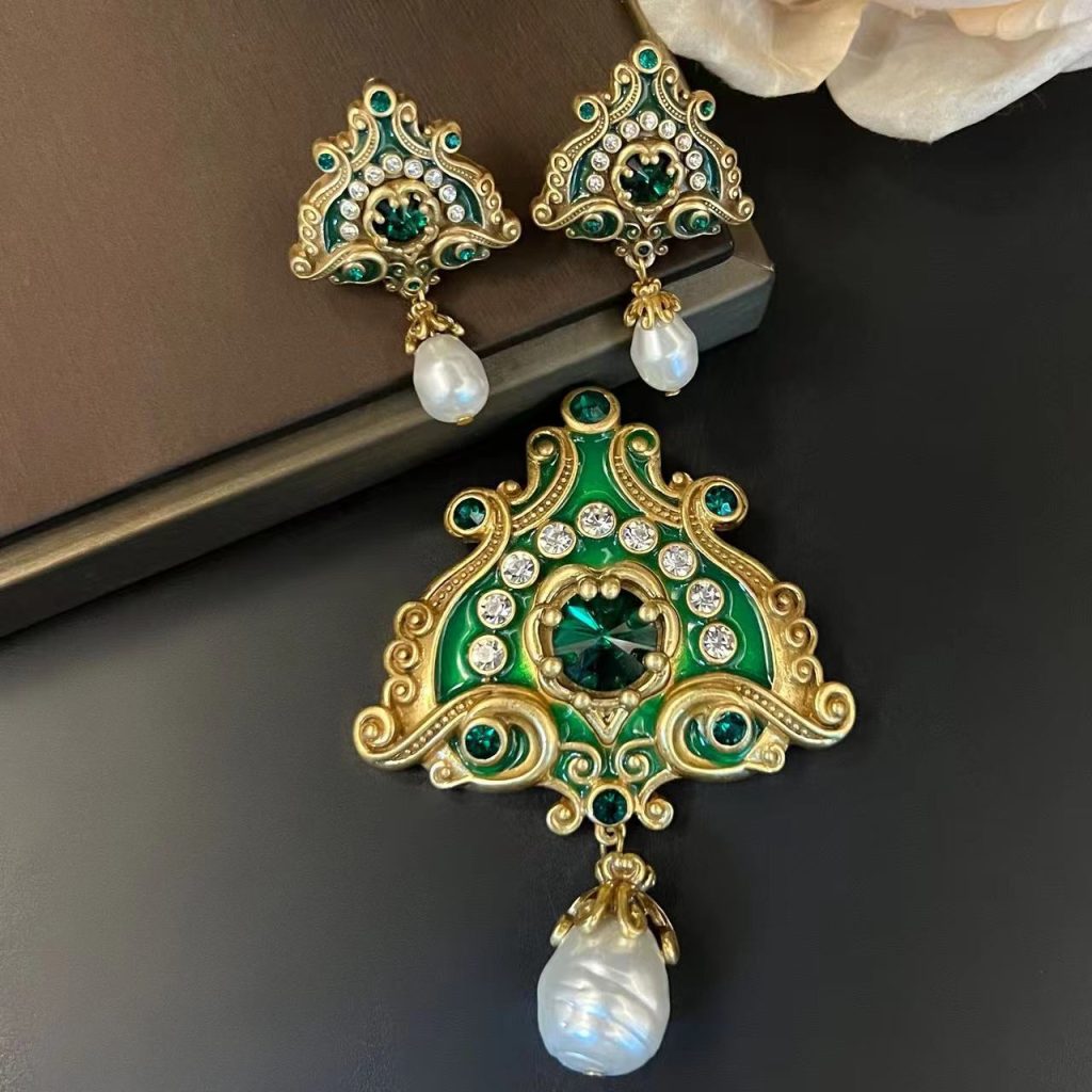 Pearl Drop Earrings Vintage Brooch Jewellery Set High Quality Brooch New Chinese National Style Light Luxury High End Pearl Stud Earrings Set