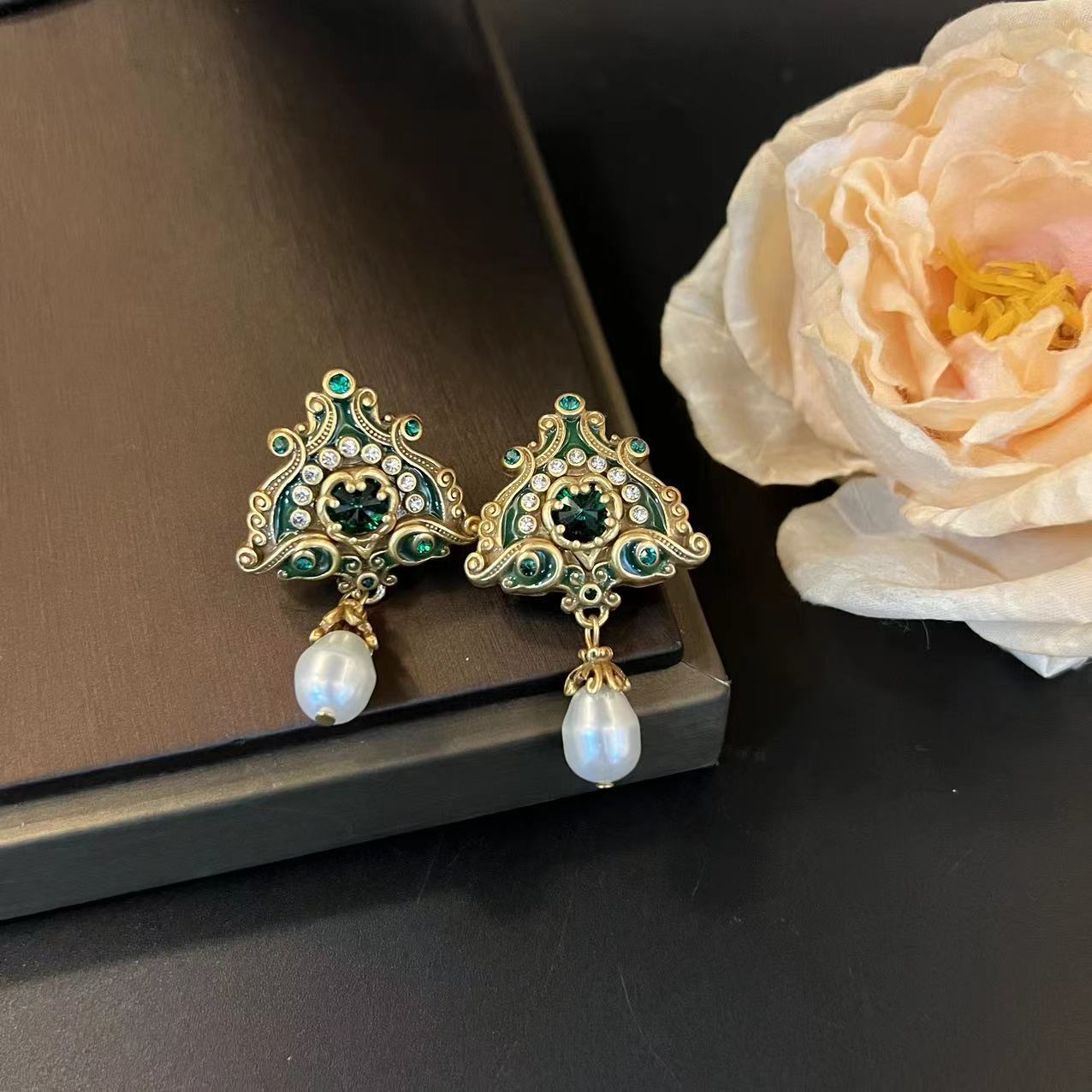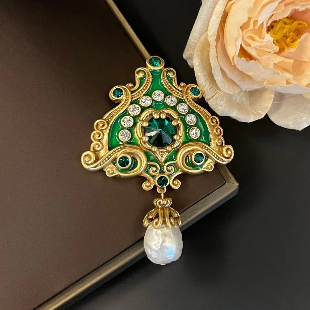 Vintage Brooches Traditional Earrings Jewellery Set New Chinese National Fashion Enamel Colour Diamond Retro Relief Totem Ear Stud Brooch