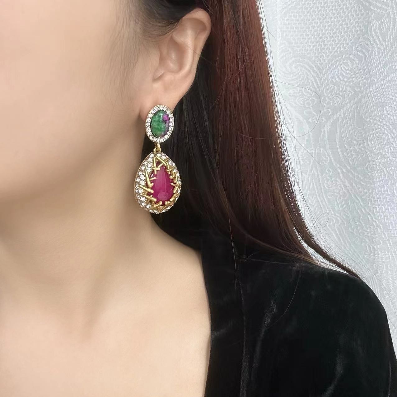 Fish Earrings Tassel Crystal Drop Earrings Womens Fashion Retro High End Floral Long Earrings