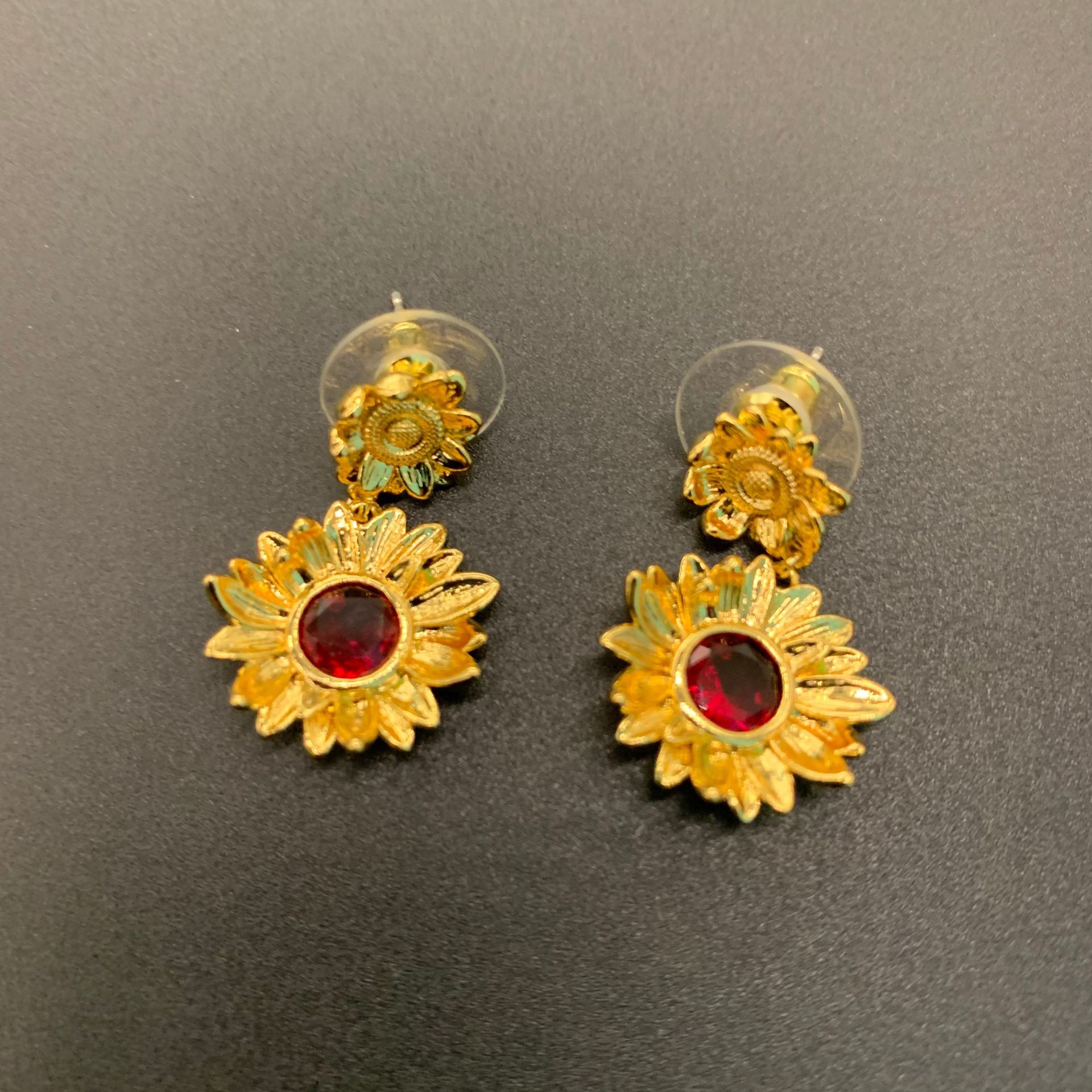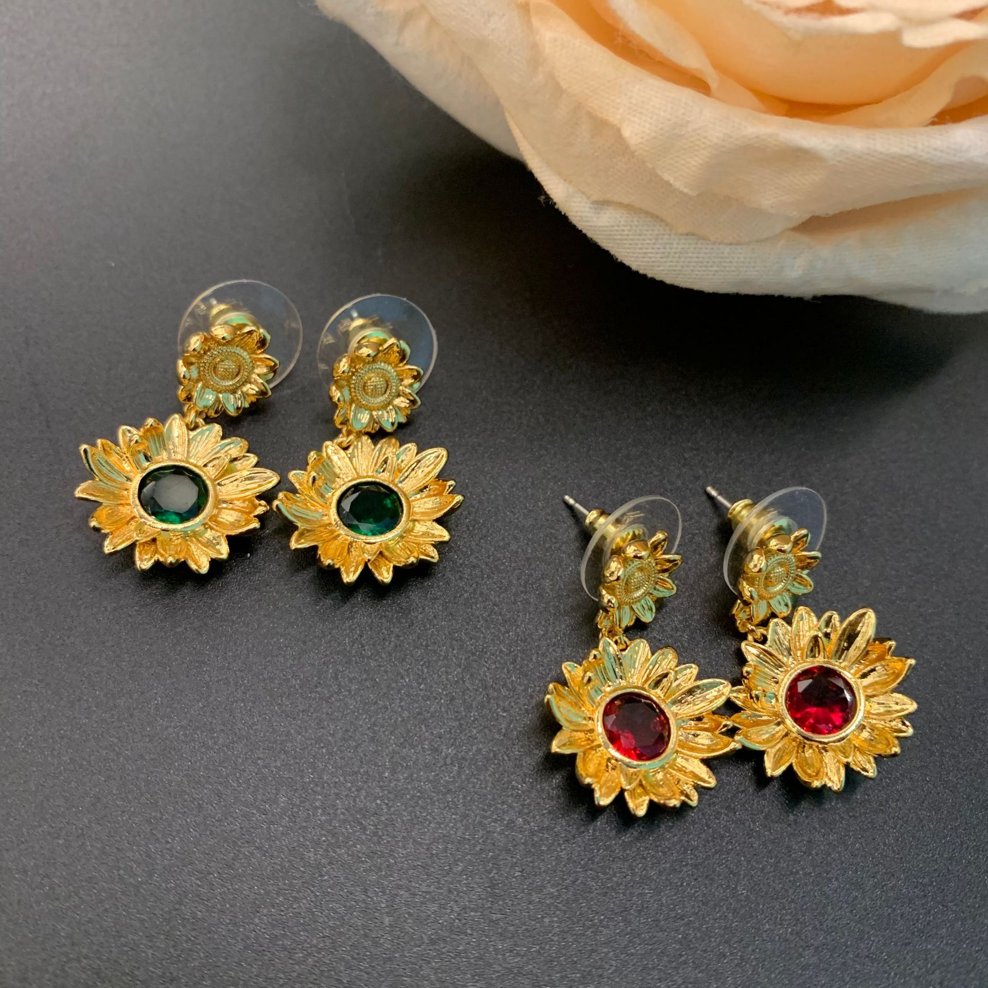 Gold Stud Earrings Retro Red Earrings Purple fashion Light Luxury High End Sense Of Temperament Versatile Rhinestone Earrings