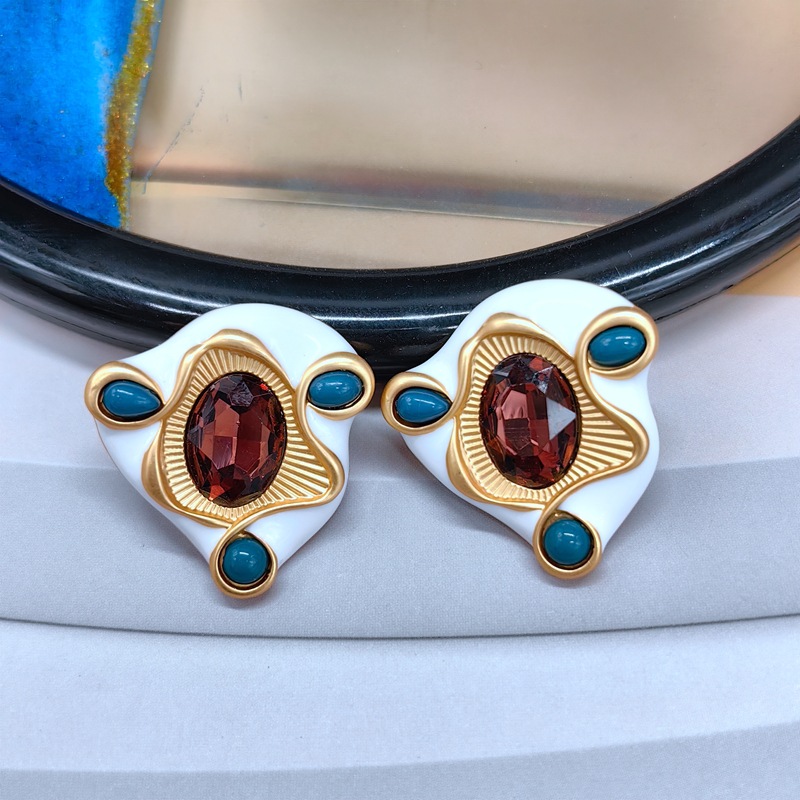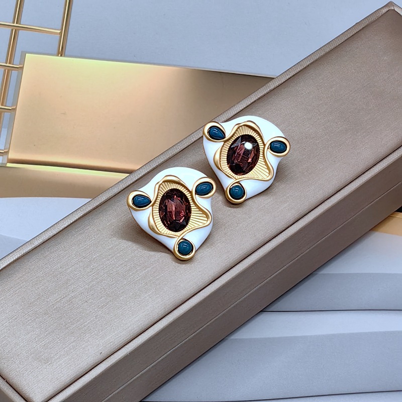 Be the first to review “White Earrings Crystal Enamel Earrings Court Style Retro Temperament Crystal earrings”